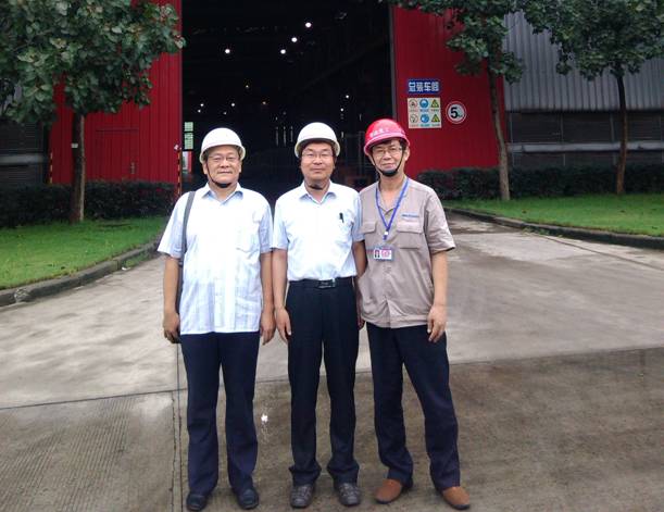 与赛迪重工生产部部长(我院02届毕业生孙剑平)(左二)合影