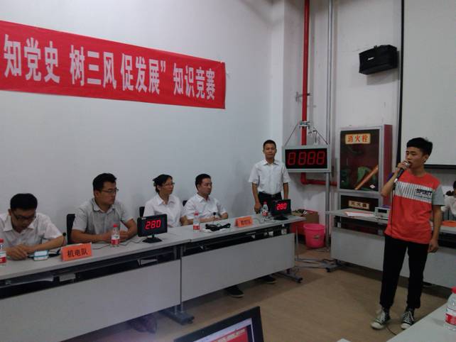 今年是中国共产党建党94周年和中国人民抗日战争暨世界反法西斯战争胜利70周年,为深入学习中国共产党的历史和建党94周年所取得的光辉成就,弘扬爱国主义精神,实现中华民族的伟大复兴,增强广大师生的责任感和使命感, 7月9日下午,数控工程学院党总支在行知楼E一层FANUC中心举办了“学党章、知党史、树三风、促发展”知识竞赛,该院全体教师和学生党员、入党积极分子100余人参加。