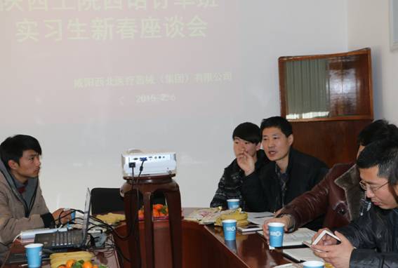 2015年2月6日上午,我院与西北医疗器械集团公司开办的“西诺”订单班实习生座谈会在该公司四楼会议室召开,数控学院院长卢文澈、党总支书记南欢和西北医疗器械集团公司生产总监田耕、总经办主任聂西社、总装车间主任刘登峰和订单班顶岗实习的二十余位同学参加了座谈会,聂主任主持了会议。