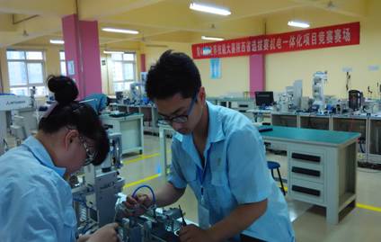 参赛学生----机电一体化技术专业学生张曼玉和罗雷兴在刘保朝和吕金焕两位教师的悉心指导下,勤学苦练两个月,专业实力显著提高。在历时4小时的比赛中,参赛选手沉着冷静参赛,临场发挥出色。6月15日喜讯传来,我院学生取得了第43届世界技能大赛陕西地区选拔赛第三名。
