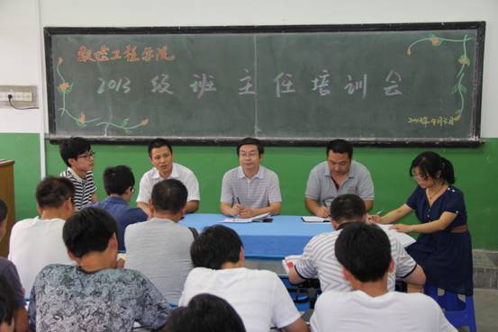 为切实加强新生班主任队伍建设,充分做好迎新准备工作,引导教师勤奋学习、爱岗敬业、甘于奉献,数控学院于9月3日下午在笃学楼B召开了2013级新生班主任培训会。总支书记南欢、学工办全体辅导员、新生班主任和班主任助理、团总支学生会主要干部参加了会议。会议由学工办主任王国柱主持。