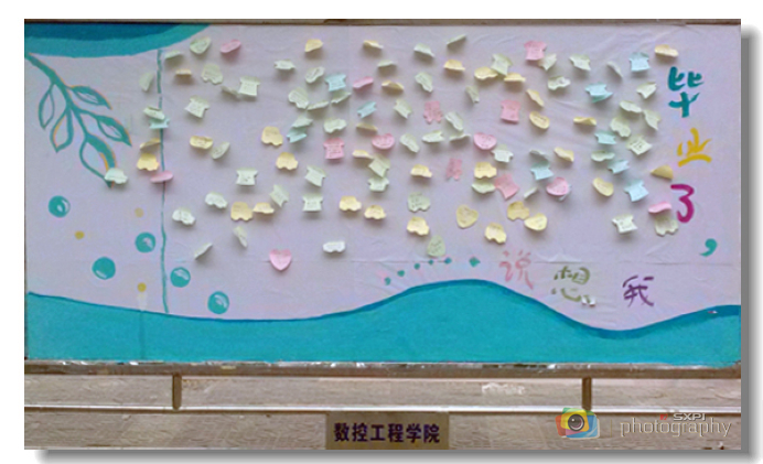 数控学院毕业生在留言墙上写下对母校的殷殷祝福