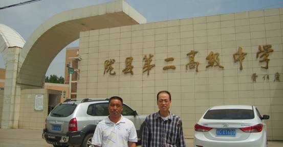张润录、宋远社老师在陇县第二高级中学门前合影