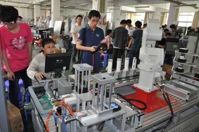 为了加快职业院校双师型教师队伍的培养步伐,提高专业课教师教学水平与实践能力,加强校企合作,促进工学结合人才培养模式的深入发展,2013年5月11日至15日,数控工程学院机电一体化技术教研室秦洪浪老师和杨亮老师参加了由全国职业教育师资专业技能培训示范单位—浙江天煌科技实业有限公司举办的2013年全国职业院校“工业机器人与视觉技术”高职骨干教师技能培训班,此次培训为其5天,有来自常州、上海、福州、陕西、天津等地的十余所职业院校共计40余名教师参加了本次培训。