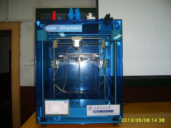 本次报告会上,还展示了一台由西安交通大学机械工程学院先进制造技术研究所、西安瑞特快速制造工程有限公司和陕西恒通智能机器有限公司联合研制的FDM实验用3D打印快速成型机。并展示了一些该打印机加工的产品。