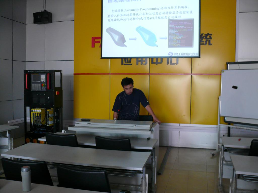 5月4日下午,根据学院《关于开展2012-2013学年第二学期期中教学检查的通知》(陕工院院字【2013】54号),数控工程学院组织该院相关教师在发那科数控系统应用中心开展了名师示范课、优秀教师公开课、教坛新秀观摩课的公开课评比活动。数控学院的院级联系领导王晓江副院长以及数控学院部分专职教师观摩了公开课。