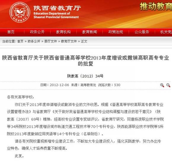 近日,从陕西省教育厅《关于陕西省普通高等学校2013年度增设或撤销高职高专专业的批复》(陕教高[2012]34号)文件传来喜讯,我院2013年增设“工业设计”专业获批。