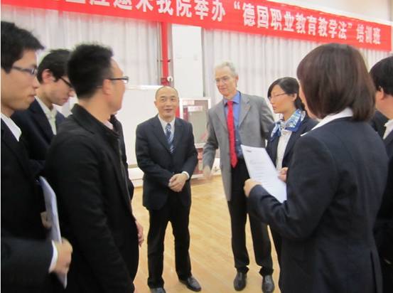 2012年4月12至4月16日,德国职教专家、巴符州教师继续教育学院高级培训师胡格先生来我院讲授德国职业教育教学法。数控工程学院南欢、祝战科、段文洁、刘锡锋、张润录、罗枚、崔静、王婷、孙荣创、杨延波、王颖、袁伟、梁盈富、刘艳申、祁伟、白帅丽16名专兼职教师参加了培训活动。