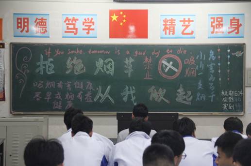 4月26日晚,数控工程学院组织各班召开“拒绝烟草,从我做起”主题班会活动。班会中,各班以“禁烟、拒烟,从我做起”为主题,通过发言交流、图片展示、横幅签名等方式,进一步增强了同学们对吸烟危害的认识。