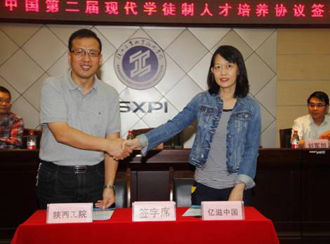 9月28日上午,我院与亿滋中国第二届“现代学徒制”亿滋班开班仪式在崇文南楼十楼第五会议室举行,亿滋中国亿滋iTech项目负责人、高级人事经理佟晓琳与副院长杨卫军签定了《陕西工院/亿滋中国“现代学徒制”人才培养协议书》。亿滋北京、亿滋苏州各公司人事、生产主管,学院校企处副处长王化冰,学生处副处长张科海,教务处副处长刘军旭,数控学院党总支书记郝军、院长刘清及亿滋班全体学员参加了仪式,数控学院院长刘清主持仪式。