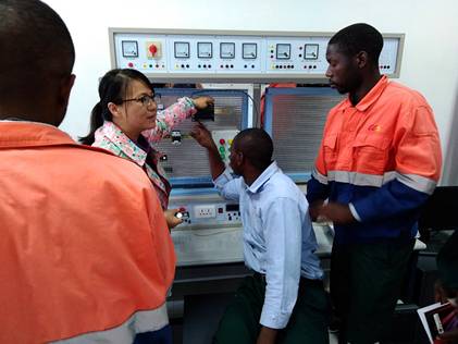 罗枚副教授主要承担电动机PLC控制技术相关课程的教学任务,培训学员主要为谦比希铜冶炼有限公司的赞方员工,整个培训采用全英文授课方式进行。为顺利完成本次培训任务,罗枚副教授做了大量准备工作,通过前期深入企业调研,充分准备英文授课内容,提前试讲演练,保证了培训内容准确、实用、高效,企业员工参与积极性很高,培训效果很好。