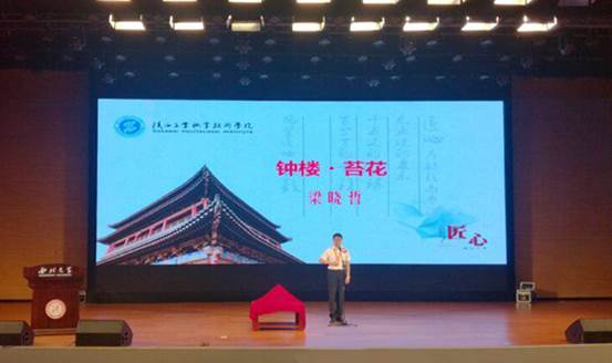 梁晓哲的演讲以《钟楼·苔花》为题,深情回顾了陕西工院人在培养大国工匠,追求工业强国梦,致力中国智造2025的征程上,脚踏实地指导学生冯伟克服困难、苦练技术、技艺结合,为学院校庆60周年制作西安钟楼模型并夺得全国数控技能大赛奖牌的故事。起起伏伏的情节,真实自然的演讲,动情感人的演绎博得了现场观众和评委的一致好评和阵阵掌声,经过专家评委对选手演讲和知识回答两环节的综合打分,荣获一等奖。我院工会获评“优秀组织奖”。