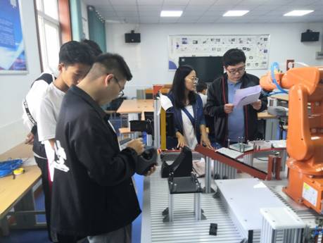此次帮扶活动主要针对2019年陕西省职业院校技能大赛——机器人技术应用(中职组)赛项进行技能培训,我院教师向礼泉职教中心的学生和老师们讲解了该赛项的主要任务,并按照竞赛任务书要求,分别讲解了工业机器人TCP点标定、工业机器人离线编程、工业机器人码垛搬运编程等大赛内容。解答了老师和学生们对大赛评分细则、机器人编程、RobotArt仿真软件、工件坐标系标定的疑问。