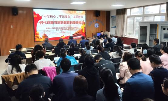 10月10日下午,结合“不忘初心、牢记使命”主题教育,党委副书记、副院长刘永亮在行知楼A电气工程学院光伏微电网实训室为航空工程学院、电气工程学院及就业校企合作党支部所有教师党员讲授题为《时代命题与高职教育的使命担当》专题党课,督导组安玲老师、党委组织部长王超联聆听了党课。党课由电气工程学院党总支书记杜云主持。