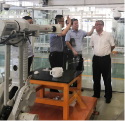 会议由航空学院院长李晓鹏主持,副院长梅创社首先欢迎李丹东主任一行的到来,并在观看学院宣传片的基础上介绍了学院的发展历史和现状,特别是学院近年来取得的成绩。李主任对我院的发展和取得成成绩表示肯定和赞赏,正是我院的发展实力吸引工信厅教育培训中心和我院共商工业机器人技术培训事宜。随后,双方就陕西省工信厅工业机器人技术培训的合作方案进行了讨论,确定由我院对陕西省选拨的职工组、教师组、学生组选手进行培训,分基础理论、实际操作、和赛前集训三教个阶段进行,培训后推荐优秀选手参加人社部举办工业机器人大赛。会后,李丹东主任一行参观了我院工业机器人1+X培训基地、工业机器人实训中心等,对我院的师资、实训条件、办学水平给予高度评价。