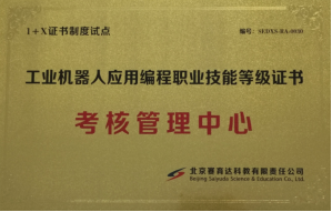 获得“1+X”工业机器人应用编程职业技能等级证书省级考核管理中心(图9)。并组织陕西工业职业技术学院、西安航空职业技术学院、杨凌职业技术学院等3所试点院校开展1+X考工作。我院首批工业机器人应用编程1+X职业技能等级证书考核通过率为86.7%。承办了机械工业教育发展中心举办的工业机器人应用编程职业技能等级证书师资培训班,来自陕西、青海、内蒙古自治区的8所高职院校26名教师参加培训。