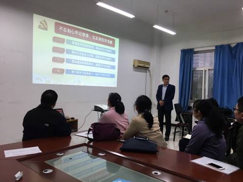 10月15日下午,航空工程学院党总支书记刘军旭以“不忘初心共筑梦,牢记使命勇向前”为题为教师党员讲专题党课,党课在行知楼E413进行。