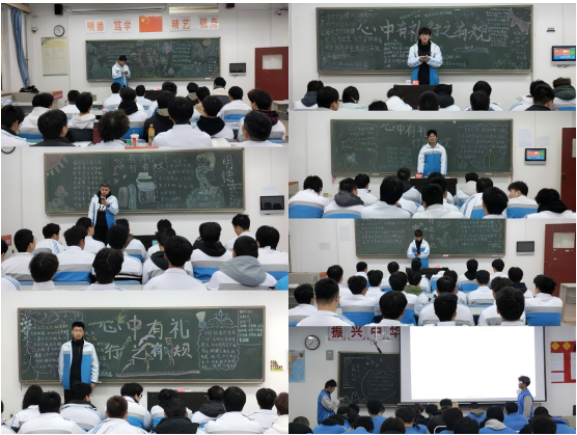为强化青年学生规则认知,筑牢底线思维,培育文明素养,2月25日,航空学院于各班晚自习教室开展“心中有礼 行之有规”主题班会。
