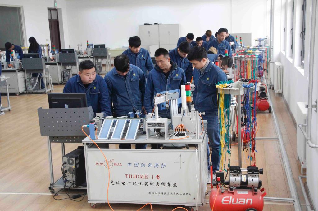 机电一体化综合实训室2011年11月建成,是中央财政支持项目,设备资产45万元。主要设备有THKDME-1型光机电一体化实训台10台,THJDAL-2型自动生产线拆装调试实训台2台。可同时容纳50名学生实训。主要针对机电一体化、数控技术、数控设备应用与维护等专业相关课程的实验和实训,目前处于国内领先。