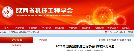 2022年5月7日,陕西省机械工程学会科学技术奖会评在西安交通大学出版大厦举行,陕西省机械工程学会理事长蒋庄德院士、常务副理事长王润孝、副理事长兼秘书长景蔚萱和监事长任国梁出席了会议。评审专家组从10个不同单位的22个申报项目中,评出一等奖6项、二等奖4项、三等奖1项。我所祝战科教授团队主持完成的《中药材及非金属矿物质超细粉磨技术研究与应用》科研成果获科学技术奖二等奖。