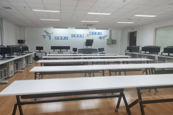 飞机维修仿真实训室2021年建成,设备资产300余万元,使用面积210平方米。A320飞机虚拟维修实训系统包括:1套空中客车A320的3D航空维修综合实训系统(含1个教师席位、1个学生席位和1个驾驶舱仿真器);13套空中客车A320的2D飞机数字化虚拟维护训练器(每套含2名学生座位)。本实训室用虚拟仿真实训,第一维度,满足航空电子、电气、机械、发动机等多机务专业实验需求;第二维度,满足民航CCAR147电子(AV)和机械(ME)两大类基础和机型培训大纲和空客维修手册规范。第三维度,实现针对机载系统的认知、操作、测试、拆装、排故和发动机试车等从低到高各个层面的实践训练,立体化的专业实验将学员从课堂平滑地导向航空机务维修工程实际。